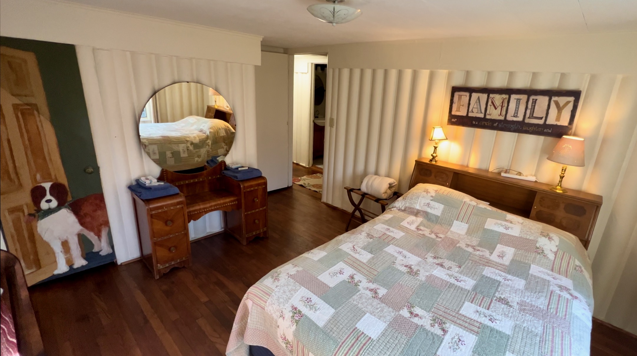 Description: A large three-bedroom two bath cabin, Oakwood is a perfect place for bigger groups. The master bedroom has a queen-size bed, along with a sleeper sofa for two. The second bedroom is equipped with a double bed, and the third also has a double bed. The living room has a large rock fireplace. The kitchen is complete with stove, refrigerator, microwave, coffeemaker, toaster, and even a dishwasher! Just off the kitchen is a sun room overlooking the creek, the fire ring, and the charcoal grill. A large covered deck is the perfect place to enjoy the sounds of the creek.